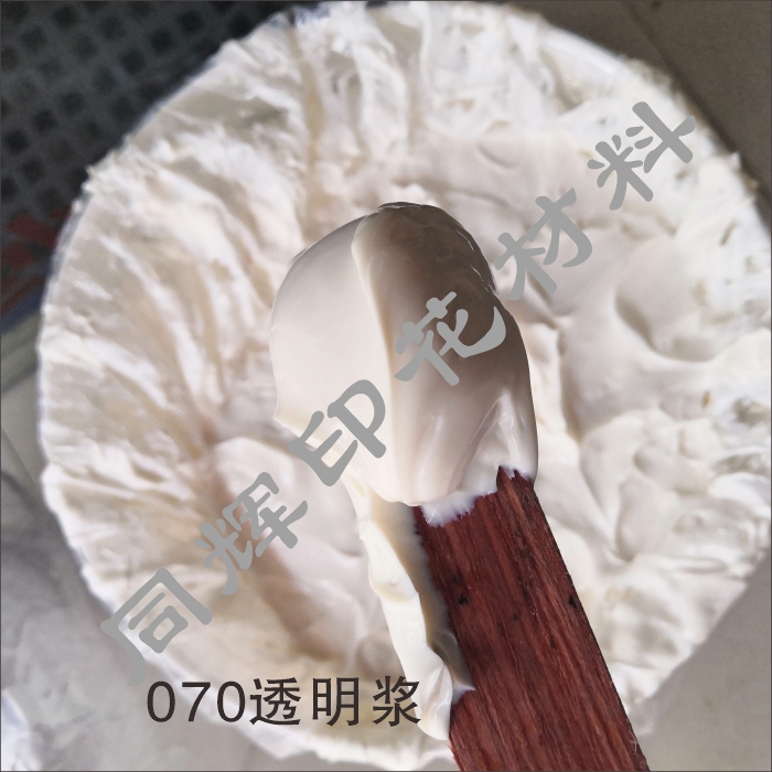 性能:高白度、高遮盖力、高弹性、手感柔软、不粘手,适用于一般品质要求的机器印花。